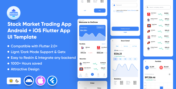 GoGrow: Stock Market Trading App | Charts | Wallet Android + iOS Flutter App UI Template