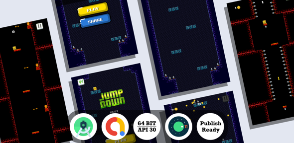 Name: Jump Down Android Game with Admob Ads + reward video + Android Studio + ready to publish