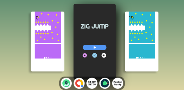 Name: ZIG Jump Android Game with Admob Ads + reward video + Android Studio + ready to publish