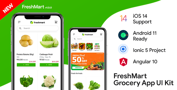 Name: FreshMart Ecommerce Android App + Ecommerce iOS App Template | Ecommerce App | IONIC 5 | Angular 10
