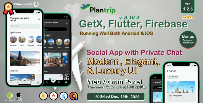 PlanTrip - Social Travel Flutter Full App with Chat Web Admin Panel Google Admob