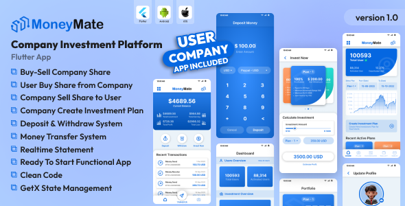 Ignite your investment business with MoneyMate, a cutting-edge Flutter app designed to simplify the complexities of investment platforms. It offers a user-friendly navigational experience, real-time financial data, and secure transaction processes, making it a top choice for finance businesses.
