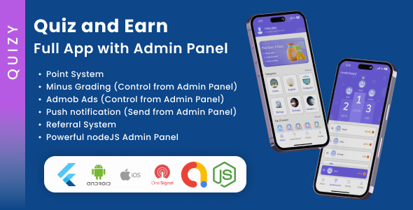 Flutter Quiz and Earn App for Android & iOS with Admin Panel | Admob | Quizy