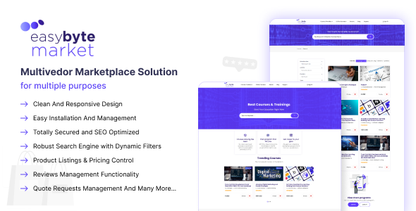 The EasyByteMarket template caters to the needs of multi-vendor marketplaces, allowing businesses to thrive in a competitive B2B and B2C environment. It excels in providing market participants with a clear, straightforward platform to conduct their business effectively.