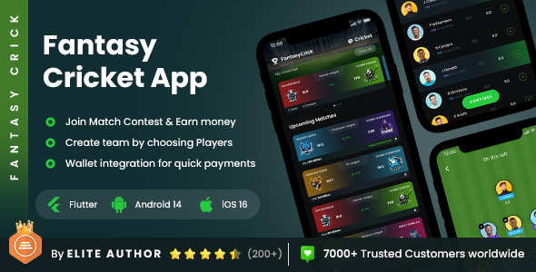 The Cricket Fantasy Android App Template + iOS App Template | Flutter | Cricket Fantasy Game Dream11, is a versatile solution for those looking to deploy on multiple platforms. Built with Flutter, this template is smooth, reactive and provides a native feel on both Android and iOS devices. This saves developers significant time and effort by utilizing a single codebase.