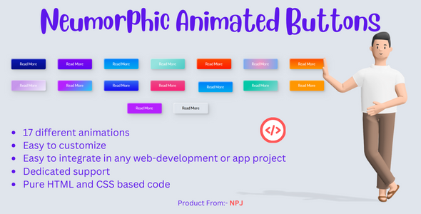 Catch your visitor's eye and enhance their interaction on your site with the Animated Buttons collection. Boasting 17 different styles, these neumorphic buttons will harmonize with any design while providing that tactile feel users love.