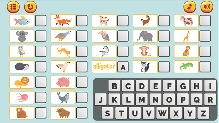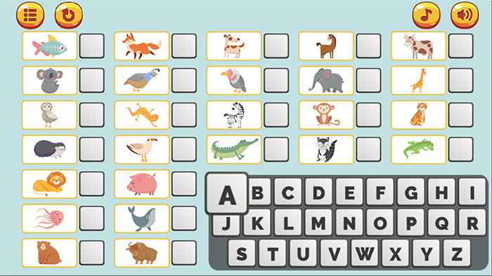 Guess what is the first letter of my name and drag it from the table below to my place.