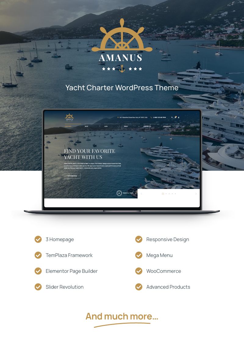 Amanus is a powerful and responsive WordPress theme intentionally made for yachting businesses and cruise travel companies. It’s fully equipped with all the customization features you might need to start a rental website in no time. There are tons of pre-designed pages you can mix and match up to your needs. Moreover, the theme is compatible with Elementor which allows you to craft pages with no coding skills required. If you’re interested in building an online store, it’s no fuss as the Woocommerce plugin comes bundled.
