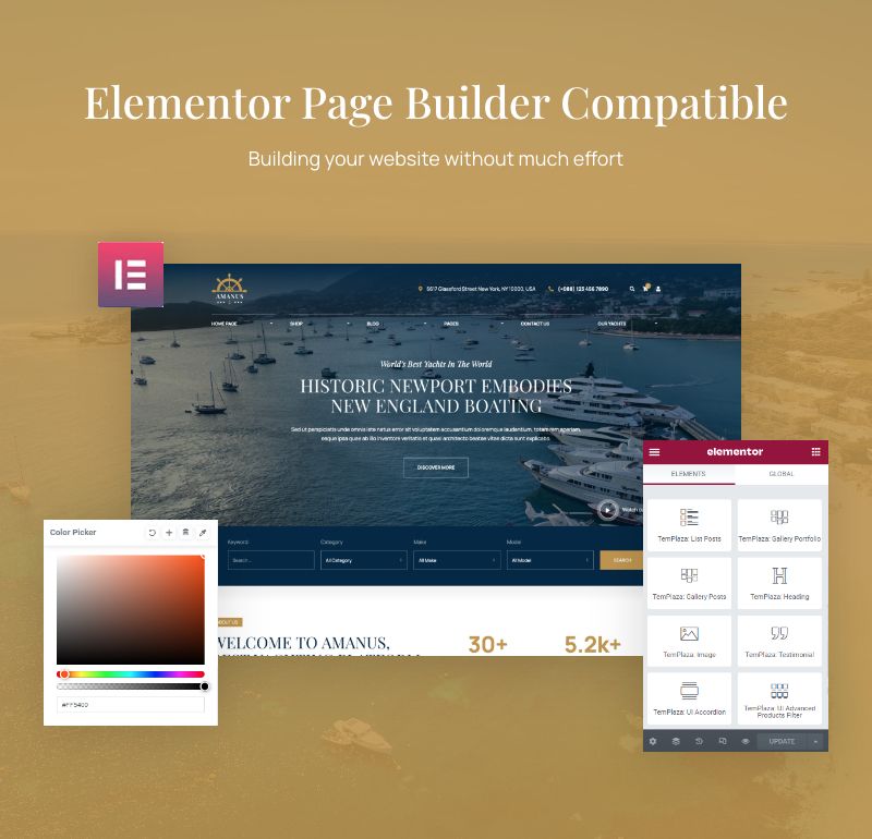 - Flexible customize everything with Elementor TemPlaza: Widgets