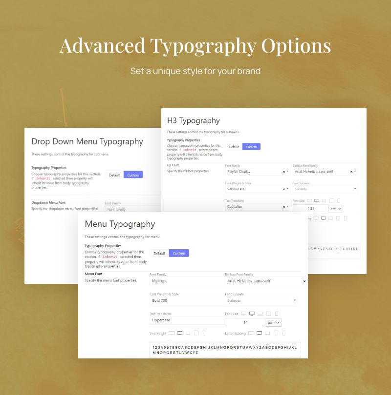 - Playfair Display (Google Font) for h1,h2,h3,h4,h5,h6