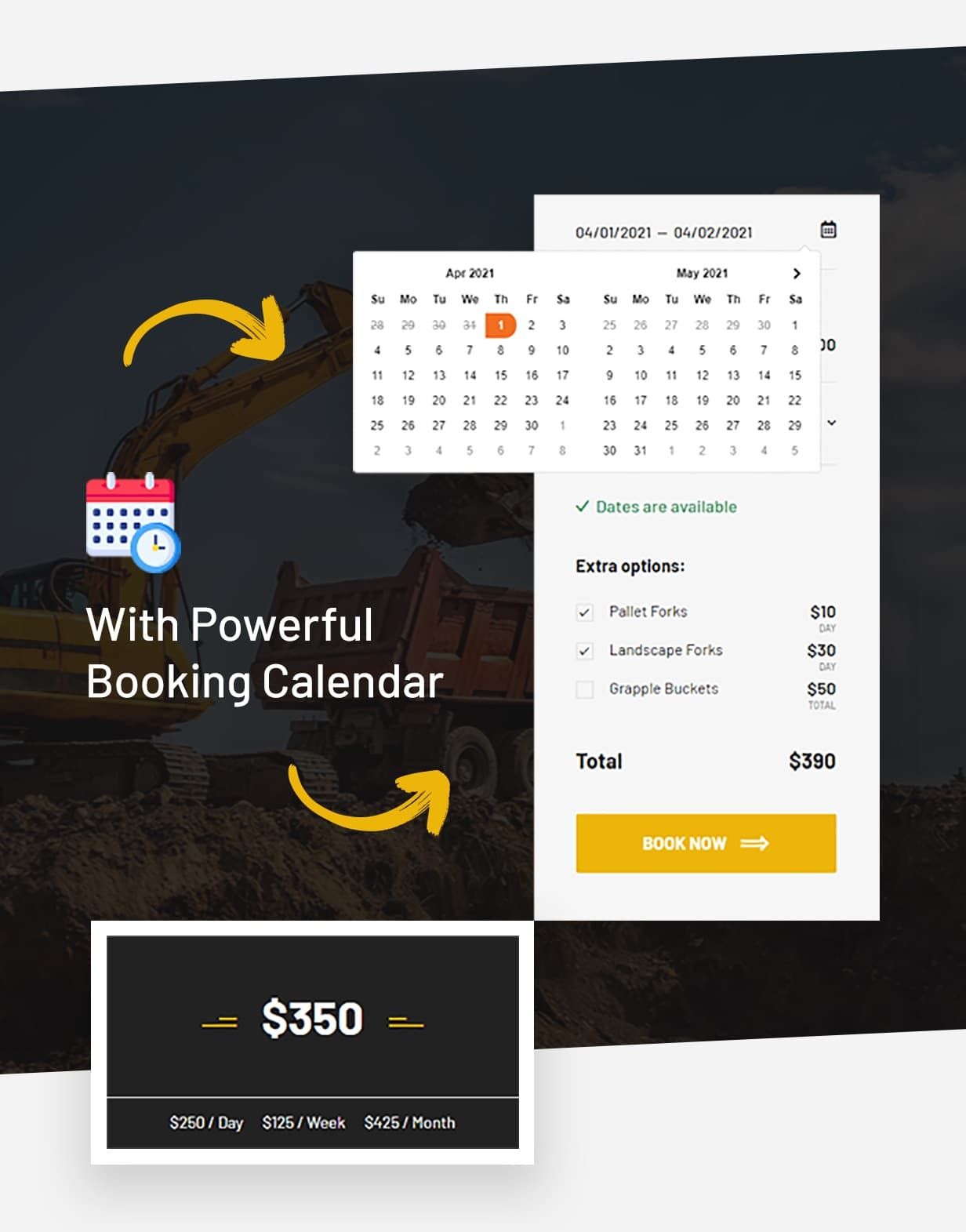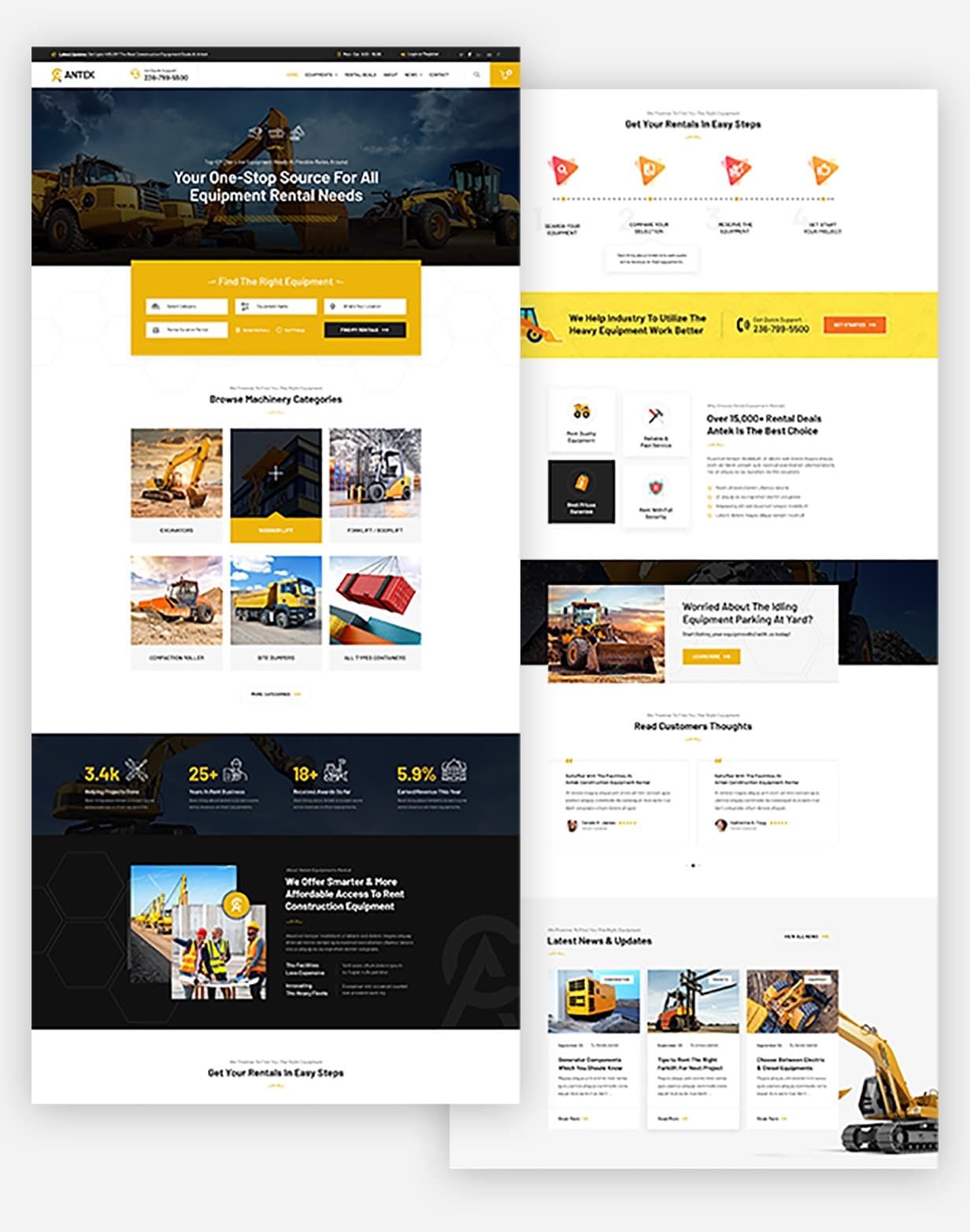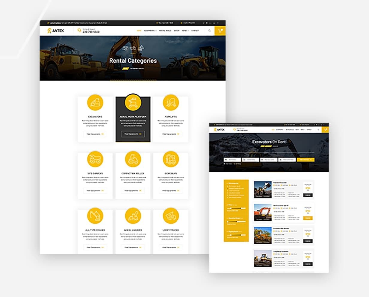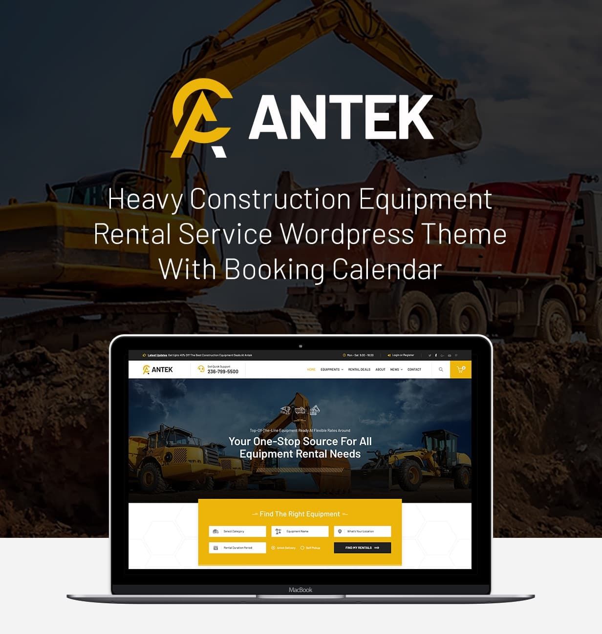 Antek is the exact theme you need if you want to build a construction equipment and tools rental service online. It features modern design and multiple layout options to choose from. The informative home page, easy to use catalogue and news blog help you to connect with your target audience.