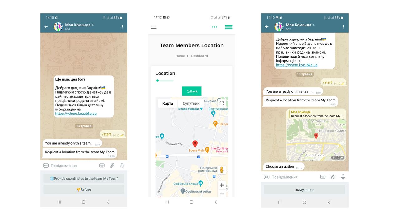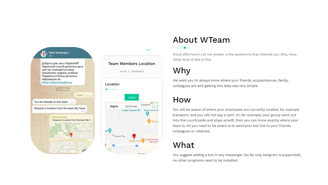 Site script for getting geolocations of your teams. Using telegram long pooling and google maps api and Blazor Server-Side