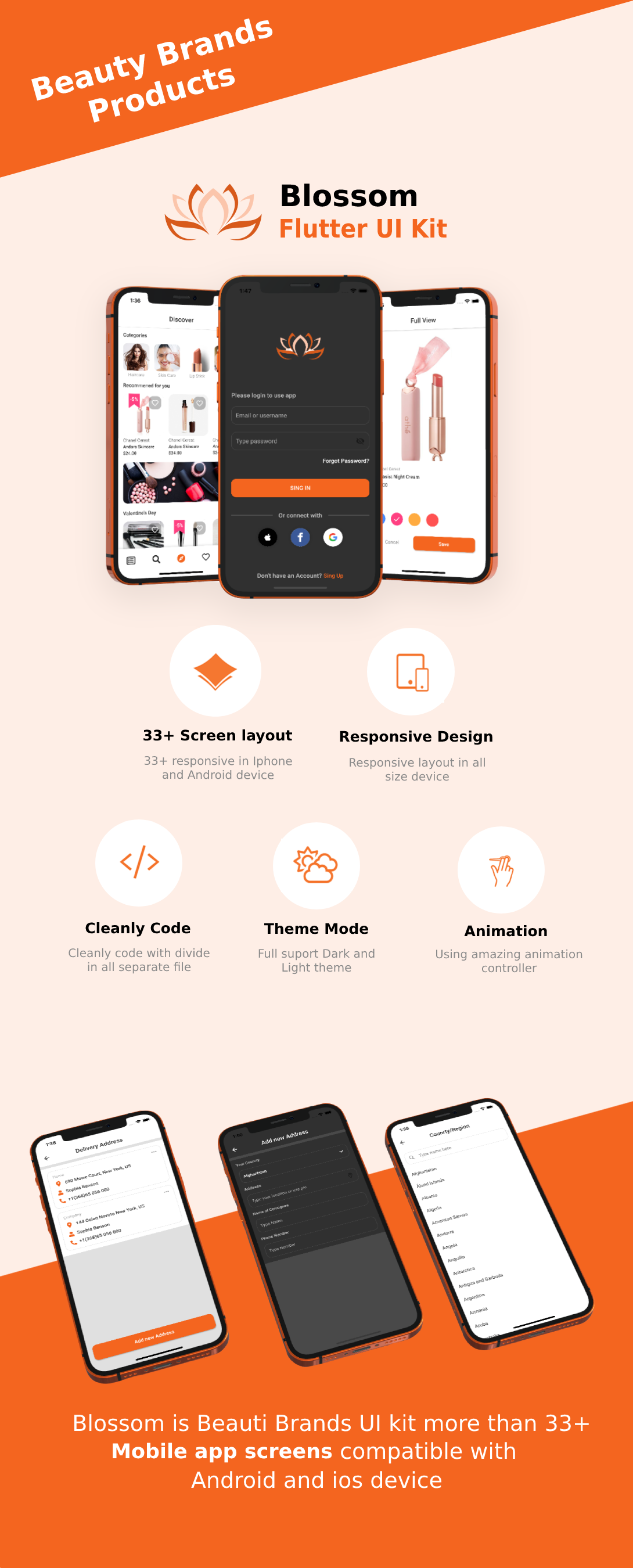 Blossom Beauty App UI contains 33+ Screens with a different type of UI component; this kit can save your time to code all Front-end layouts and it’s easy to implement with your code. one of the main things is Its supports both platforms Android and iOS.