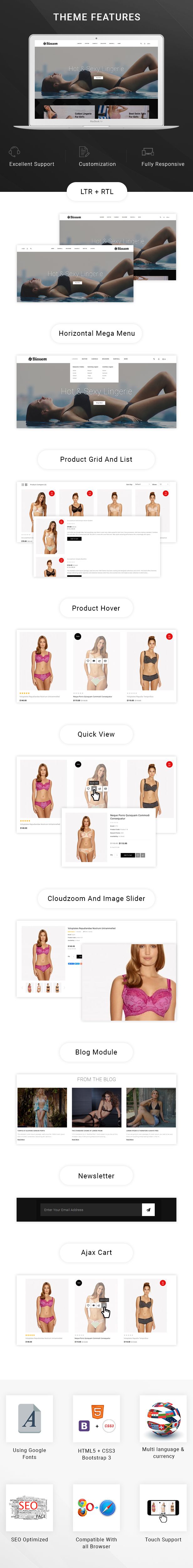 Blossom Lingerie Store OpenCart 3.x Responsive Theme is perfect deign for Lingerie, Underwear, Bikini, Bra, Panties, Adult, Sex Toys, Fashion, Apparels, Beauty, Jewelry, Cosmetics, Clothes, Shoes, Watch, Goggles minimal and multipurpose store.