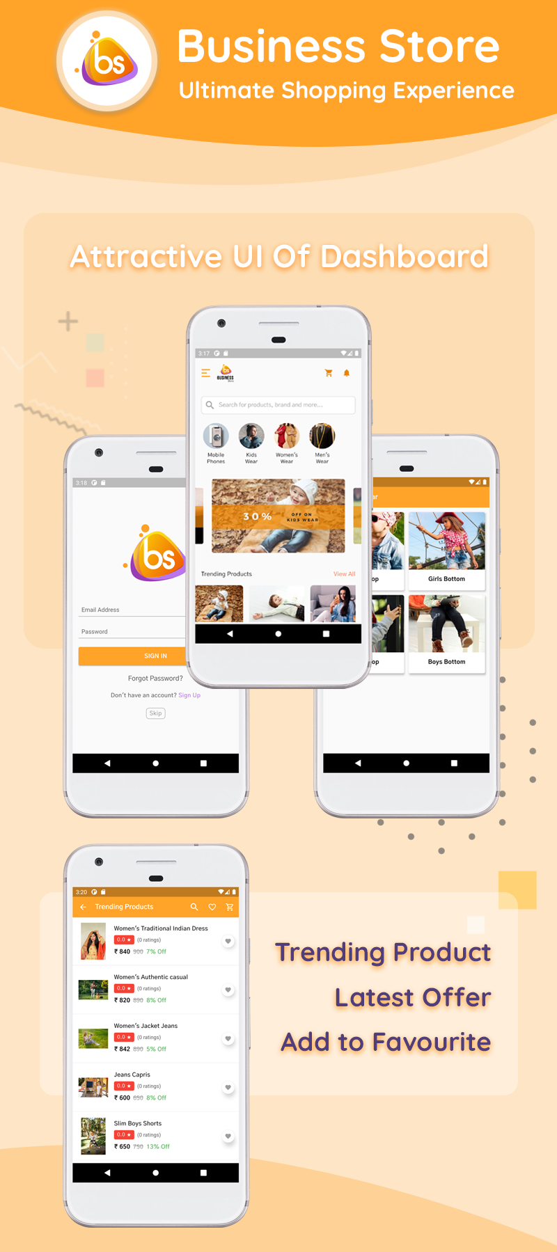 This initial Business Store is designed and developed for Individual small to bigger business owners who want to sell their products online through the mobile app. It can be used to sell any type of products like clothes, computers, laptops, electronics, mobile phones, etc..