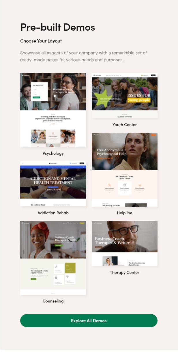 Cerebrum has lots of customizable features for showcasing your psychology practice and describing your services. It’s also can be interesting for Counseling Therapist, Diet and Nutrition Consultant or other professions who needs a personal website.
