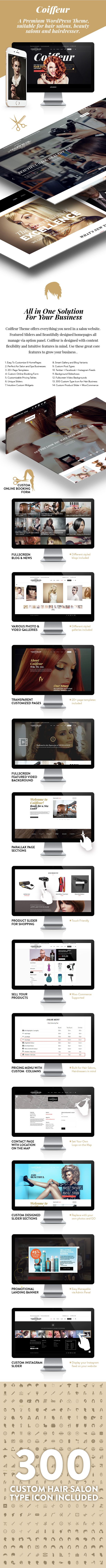 Coiffeur is a premium WordPress Theme, suitable for hair salons, beauty salons and hairdresser. Designed to suit hairdressers, beauty salons, massage parlours & day spas, medical business, beauty centre and beauty treatment businesses. The Theme is very flexible and is easy to use with loads of great features. Of course, you can use this theme also for other business. It can be easily adapted to any kind of website due to all the features theme has.