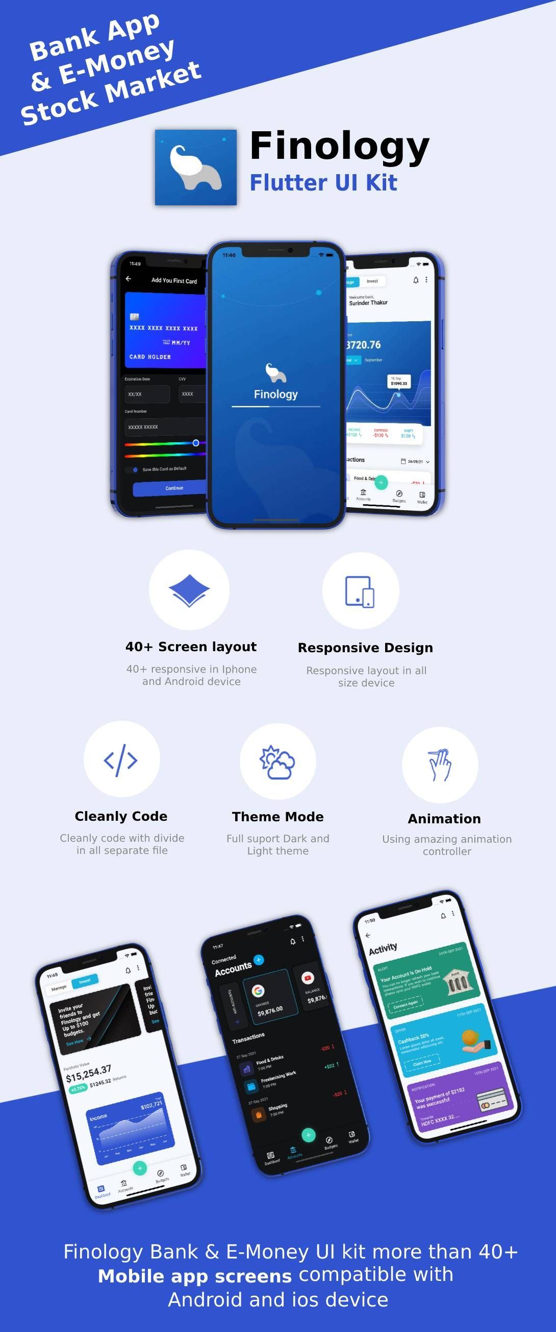 Online Bank & E-Money and Stock flutter UI Kit is based on Transaction Your Bank Account Online. This App has Very Beautiful Screens With 40 Light and 40 Dark modes.