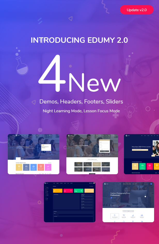 - Introducing Edumy v2. More than 15 new Live Customizer blocks. New headers, footers, sliders, and more. Minor fixes, updates, performance improvements.