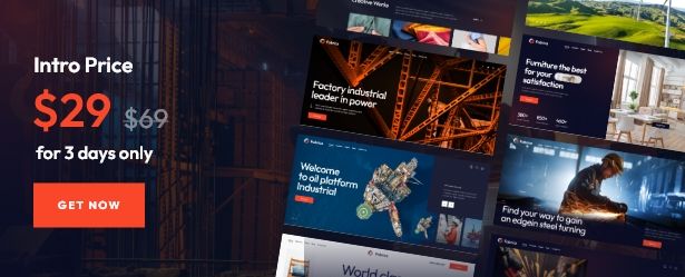 Fabrica`s solid industrial design, colors and attractive layouts will build positive relations with your customers and will establish a reputation of trust and professionalism.