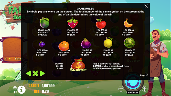 Farm Slot is an HTML5 slot machine game. Attractive game rules and much more are waiting for your to discover. We promise you will love this slot game If you have a fan of slot games.