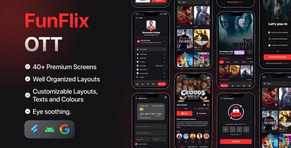 Funflix is a mobile app template built using Flutter, which is designed to serve as a starting point for building your own Over-The-Top (OTT) platform app. The app template includes a range of features such as movies and series listings, download functionality, user profiles, wishlists, and advanced security features to ensure user privacy and data protection. Built using Flutter, the template is highly customizable, making it easy to add new features or modify existing ones to fit your specific requirements. Overall, Funflix is a powerful app template that can help you quickly create a custom OTT platform app for your audience.