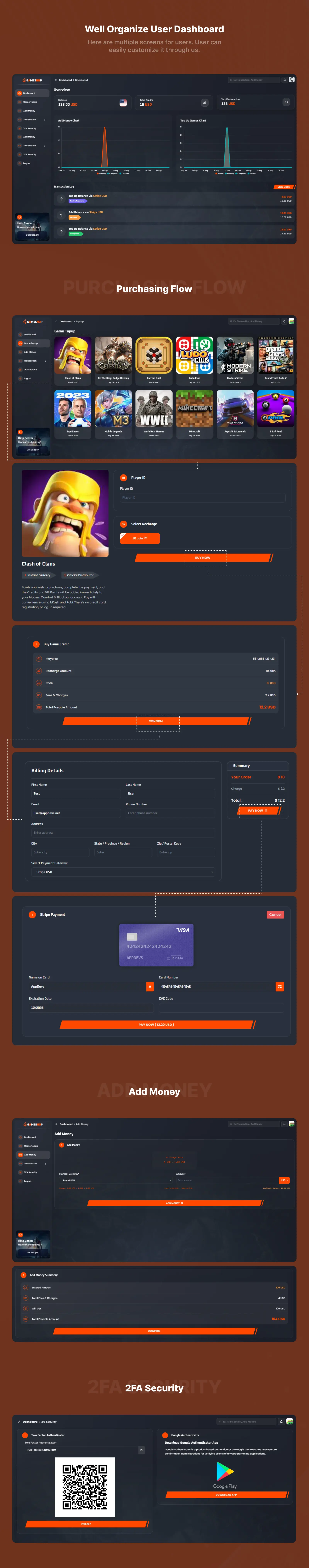 Introducing GameShop, the ultimate gaming hub that offers a complete package for Online Game Diamond Top-Up and Gift Card Business Platform, encompassing a user-friendly website, Android and iOS apps, and a robust admin panel. GameShop supports Free Fire (INGAME) and Free Fire (IDCODE) top-ups, as well as Diamonds, Coins, and PUBG top-up transactions, making it the ideal choice for both gamers and entrepreneurs. With GameShop, business owners can effortlessly sell their products using their local currency, while users can easily purchase in their own local currency, ensuring a seamless and convenient experience. GameShop empowers you to set up and expand your gaming business, providing a global reach while catering to local preferences. Stay ahead in the competitive gaming market with GameShop, your all-in-one solution for success in the gaming industry. Get started today and level up your gaming business!