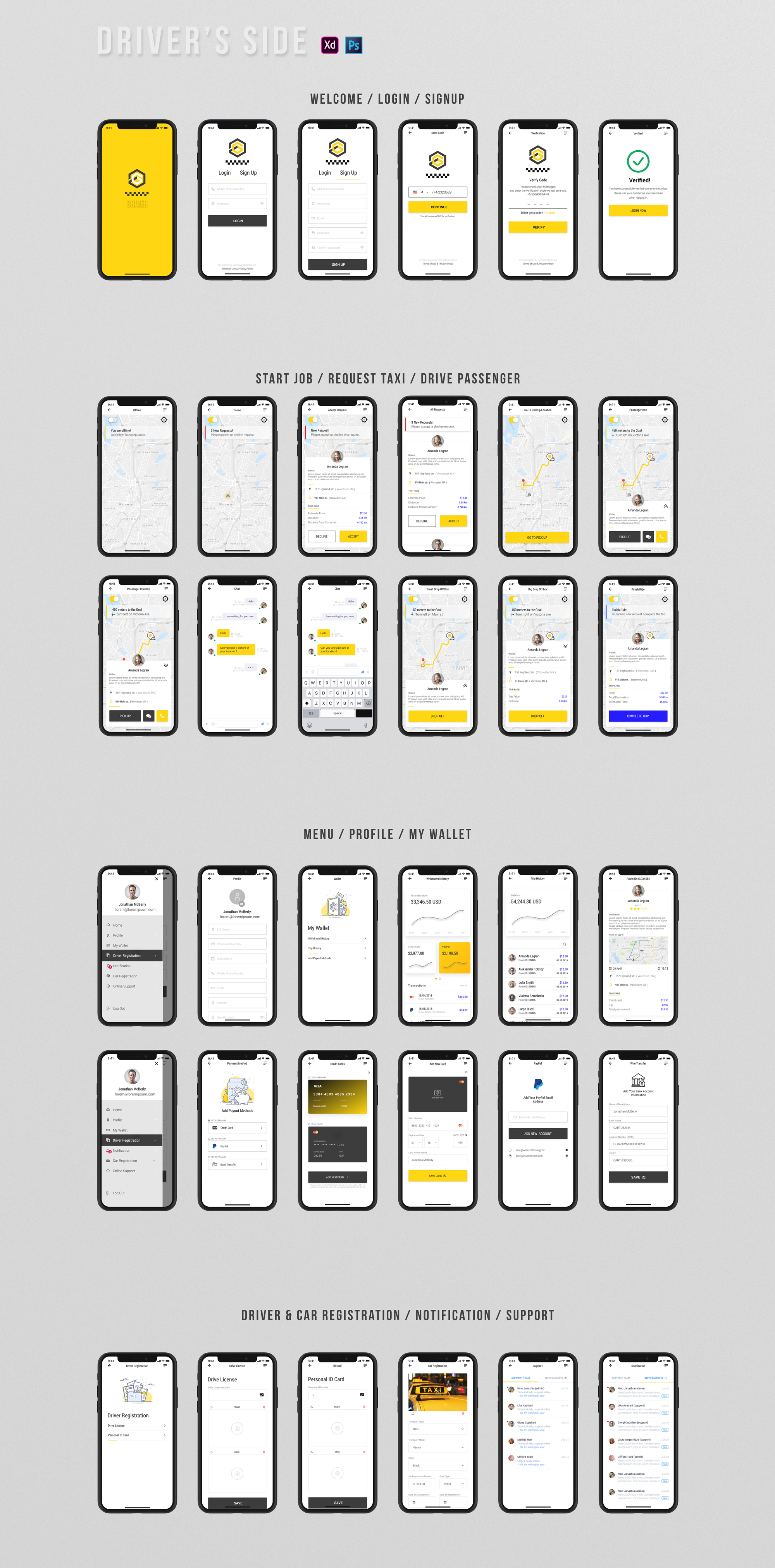 It also comes with a fully interactive & linked prototype inside the Adobe XD File to help with UX and build the app faster.