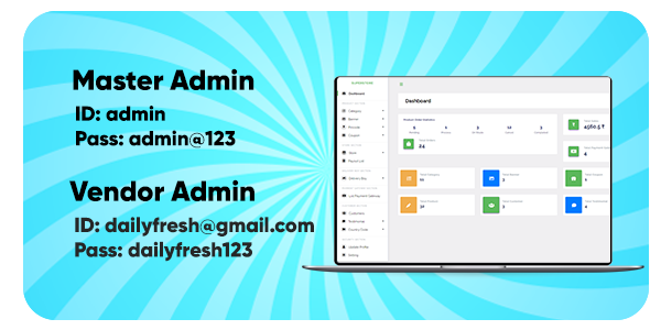 - Admin can see the Pending, Process, On Route, Cancel, Completed, Total Orders, Total Sales, Total Delivery Boy, Total Payment Gateway, Total Store, Total Category, Total Banner, Total Coupon, Total Pincode, Total Product, Total Customer, Total testimonial, Total Payout