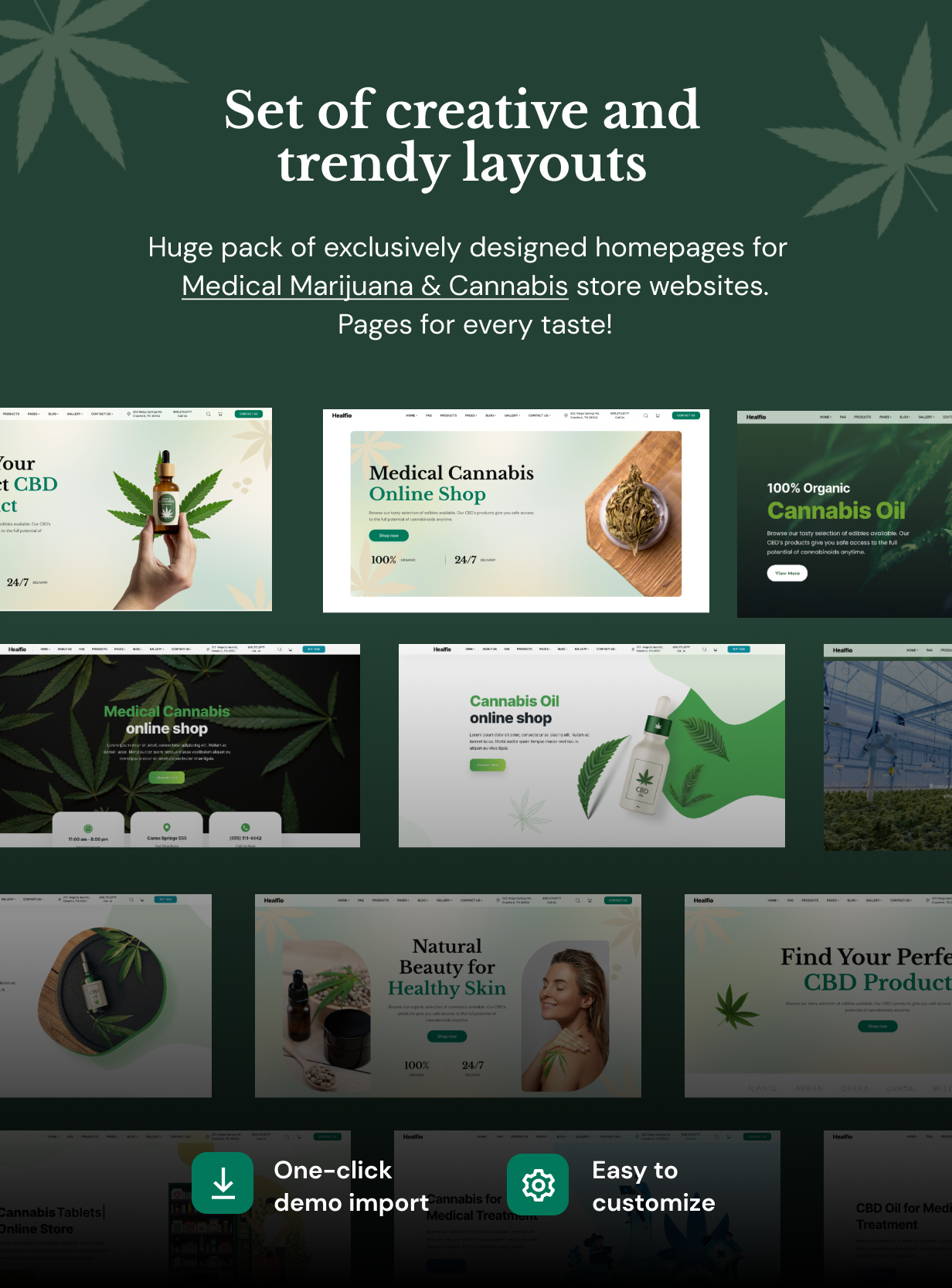 Healfio is a modern Medical Marijuana & Cannabis WordPress Theme created for recreational medicine, marijuana shop, CBD Oil and marijuana dispensary, coffeshop, medical cannabis store, hemp oil, indica, sativa, hybrid, THC, cannabis blogging and more.