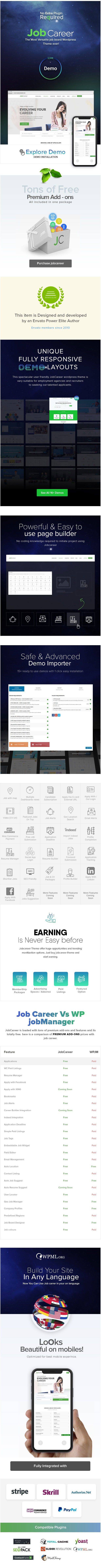 New Added: JobMap Demo - Jobs With Maps New Added: FindJob Demo New Added: CareerMove Demo New Added: New Users (Candidate, Employer) Dashboard Views New Added: Compatibility upto Wordpress 4.9.6 Improvement : Major changes in Chosen and responsive scripts Fixed: Apply with and without login issues Fixed: Candidate name is not show when candidate apply for the job Fixed: Issues in Candidate Apply packages Fixed: User csv Import/Export issue Fixed: Job Alerts email notification is not working Fixed: PayPal payment gateway issue. After cancel the payment job showing active Fixed: Candidate keyword search Notices Fixed: Terms and condition ON/OFF button not working Fixed: Bank transfer Job status is appearing Active Directly via Woo commerce checkout Fixed: Job detail link is not working in Listings Tabs element Fixed: Responsive and Styling IssuesChange Log: Version 2.3 (12/04/2018)