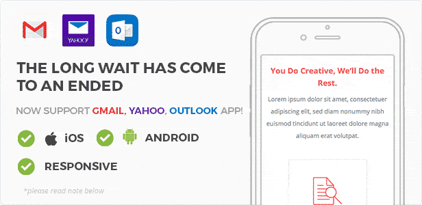 - Also responsive in Yahoo Mail app and Outlook mail app on a mobile device, and stacking correctly in Gmail app.