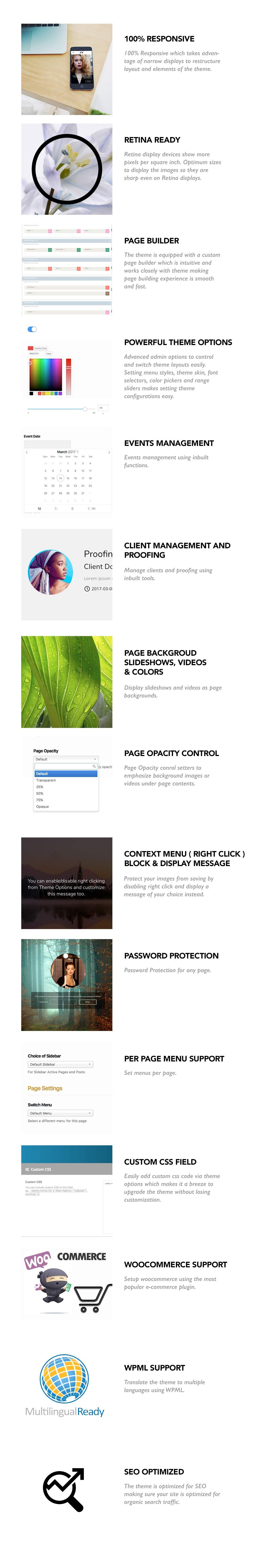 Kreativa Photography theme is a feature rich theme for professional photographers. It includes proofing, events, fullscreens, portfolios and galleries for photographers to create a unique website.