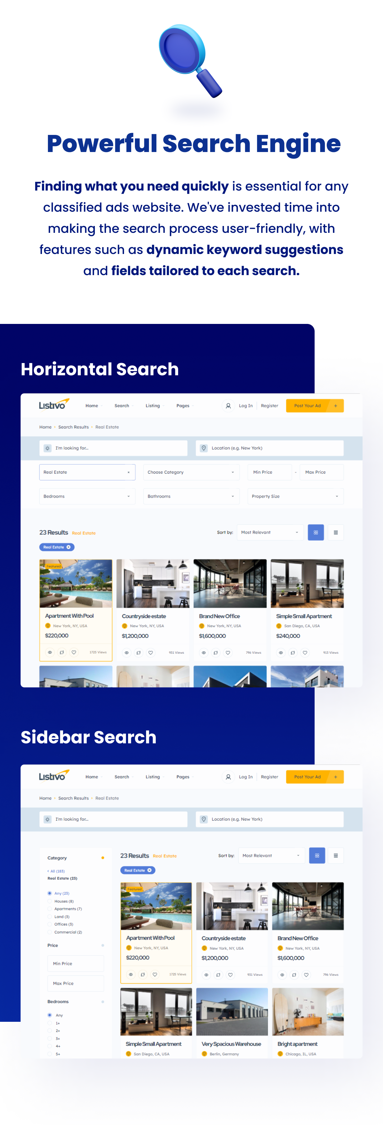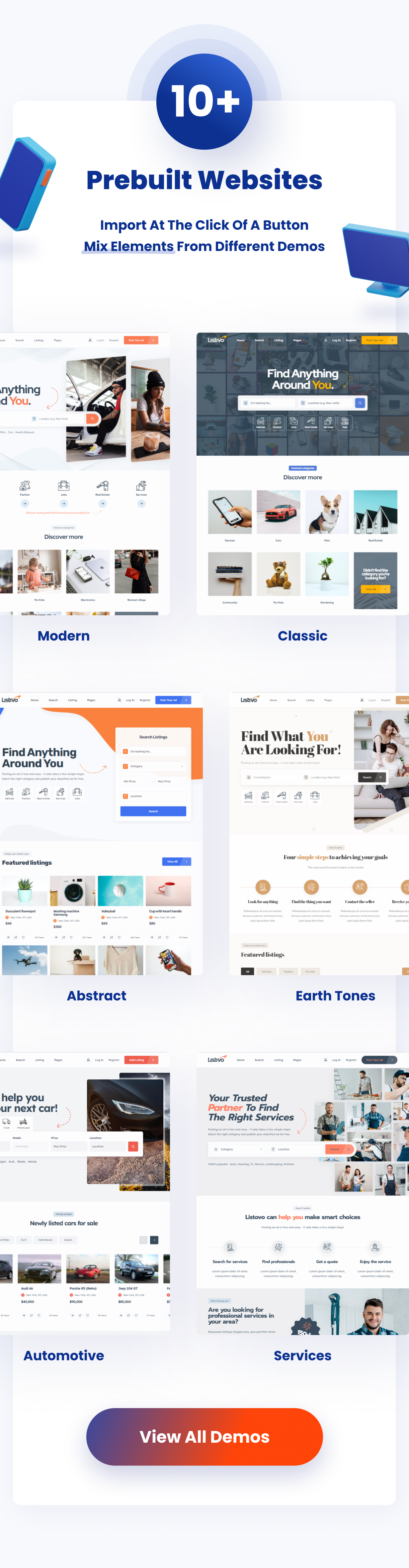 Listivo is a multipurpose directory WordPress theme that can be used in many industries. Full integration with elementor page builder makes it easy to customize any type of page. With Listivo you can easily build directory listing websites. We also provide demos for specific niches such as classified ads, real estate or car dealers.