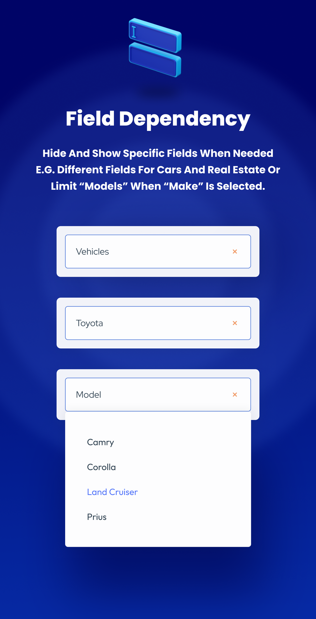 Relevant Fields – Your visitors only need to see fields that are relevant for their search, e.g., different fields for real estate than for vehicles. You can create these kinds of relationships so the user experience is much smoother and you can build a perfect directory website.