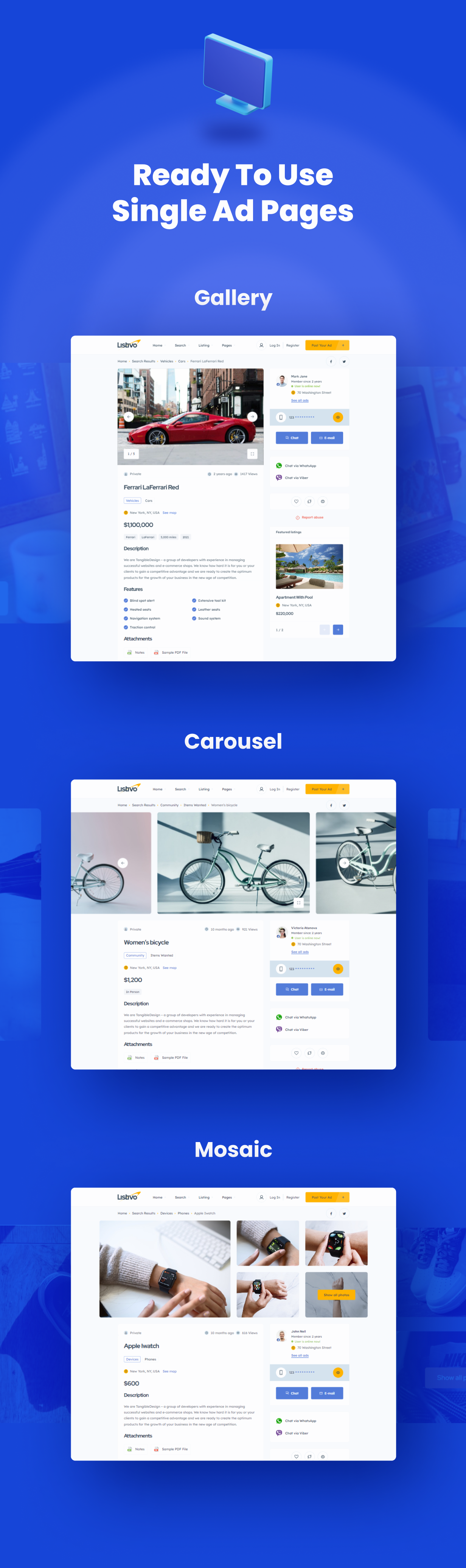 Added: Email Notification Template - Listivo email will look much better now, and you can customize it fully by editing the HTML template file - wp-content/themes/listivo/templates/mail/base.php - if you decide to customize this file; please remember to put it in the Child Theme to keep future update compatibility Added: Single Ad Page - New Widget "User socials" Fix: Minor php, js bugs
