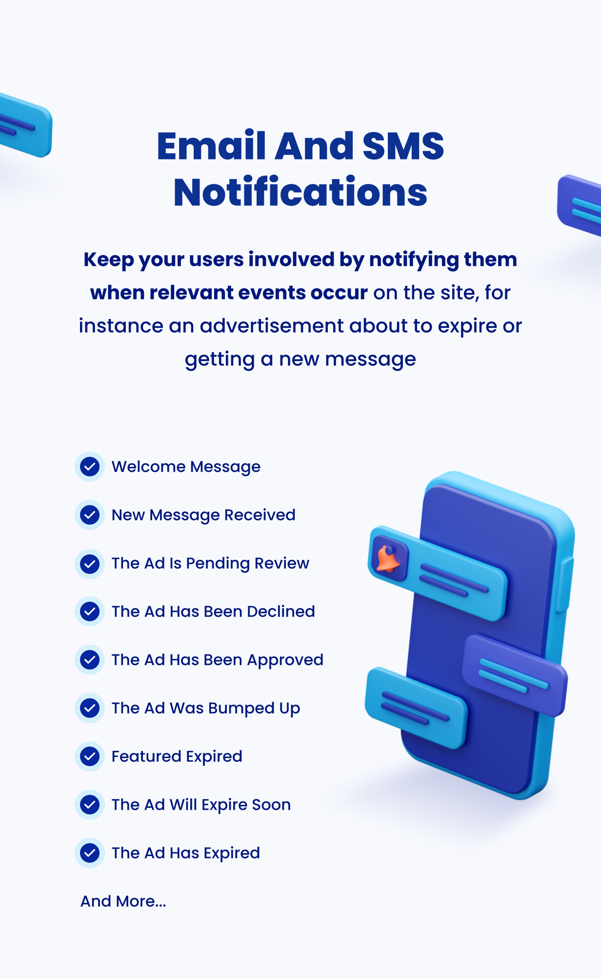 Added: New Flexible Notification System - Send SMS notifications via Twilio - Create your own sms/email notifications based on triggers - New trigger: User registration (for admin) - New trigger: Featured expired - New trigger: The ad will expire soon - New trigger: The ad has expired - Notification Log - view what Listivo is sending Added: Menu V2 - Styling Hampburger Menu Icon Fix: Text "Expire: Never" was display wrongly on "My Listings" and "Moderation" Fix: User Panel > Add Ad > If "Ad Name" is hidden form could not work correctly