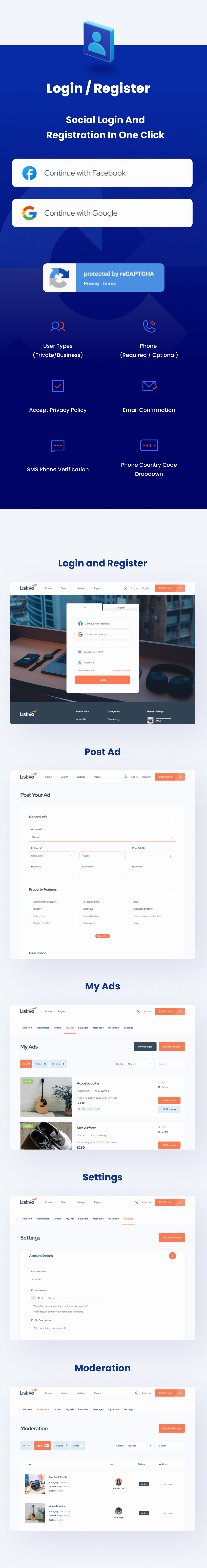 Added: Listivo Panel > User Panel > Moderation > "Ad Name" and "Ad Description" Hints Added: Listivo Panel > Settings > Currency > "If the number in the decimal part has only zeros, they will not be shown." Added: User Panel > Settings > Delete Account Added: Elementor "Single Ad" and "Single User" Widgets changes a) new section Visibility - You may use it to have different widgets displayed for Private and Business account - You can set the widget to be visible only when the viewer is logged in b) New widget User Custom Text - This allows you to show specific content depending on the type of user(Private/business) Elementor widget "Ad Stats" was renamed to "Ad Info" and if Listivo Panel -> User Panel -> Business Account -> Account Type is turned on, it will display the user type (Private / Business) on the Ad Page
