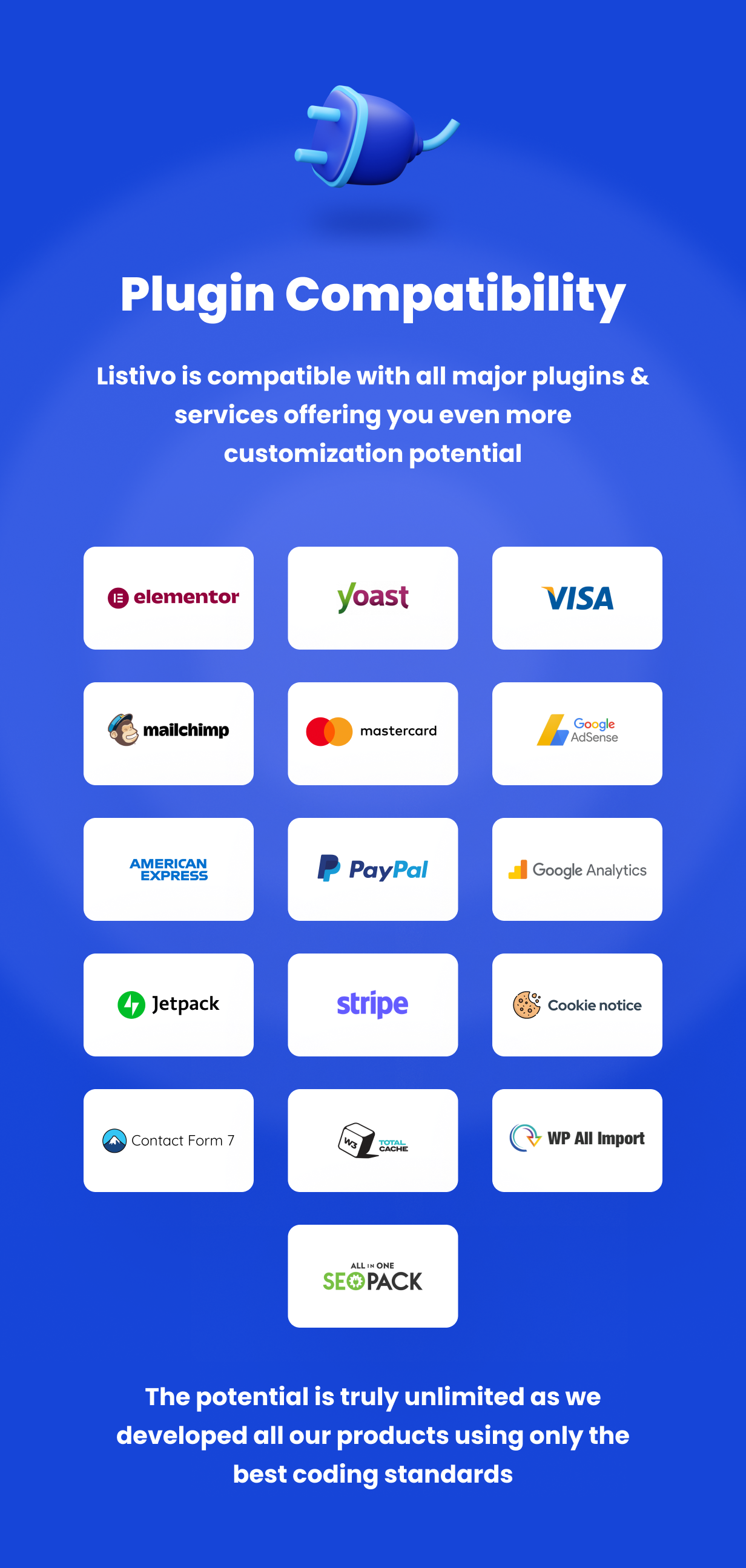 Supported 3rd party-plugins – Listivo can be smoothly integrated with most popular plugins. We fully support Yoast, W3 Total Cache and Contact Form 7.