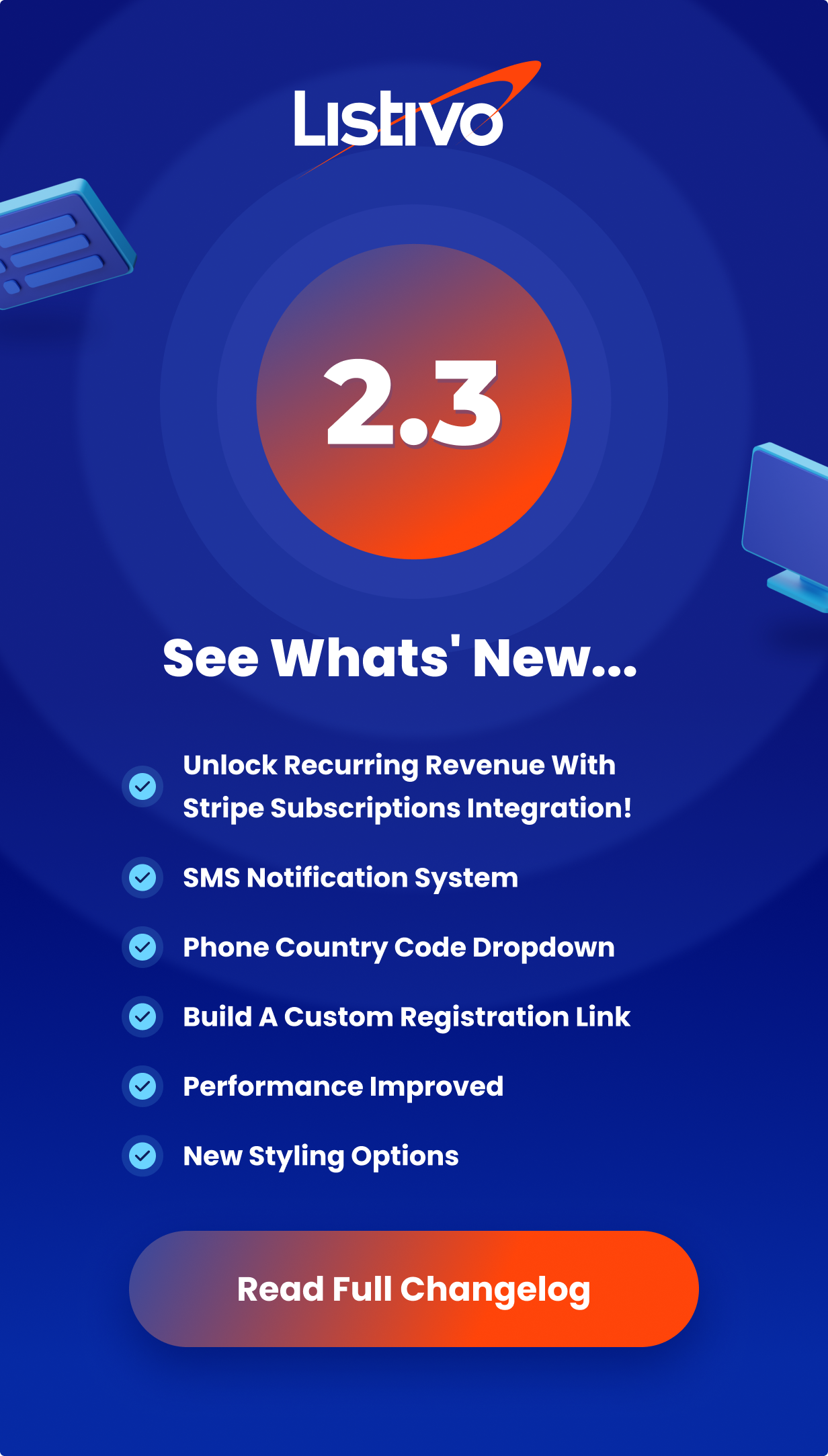Added: Elementor Widget: Hero Search V4 - more flexibility related to design Fix: Stripe Subscription - Currency. Now it is centralized in the "Stripe" tab not in the package settings Fix: Listivo Panel > SEO > Override Title Tag stopped working Fix: Minor PHP, js issues
