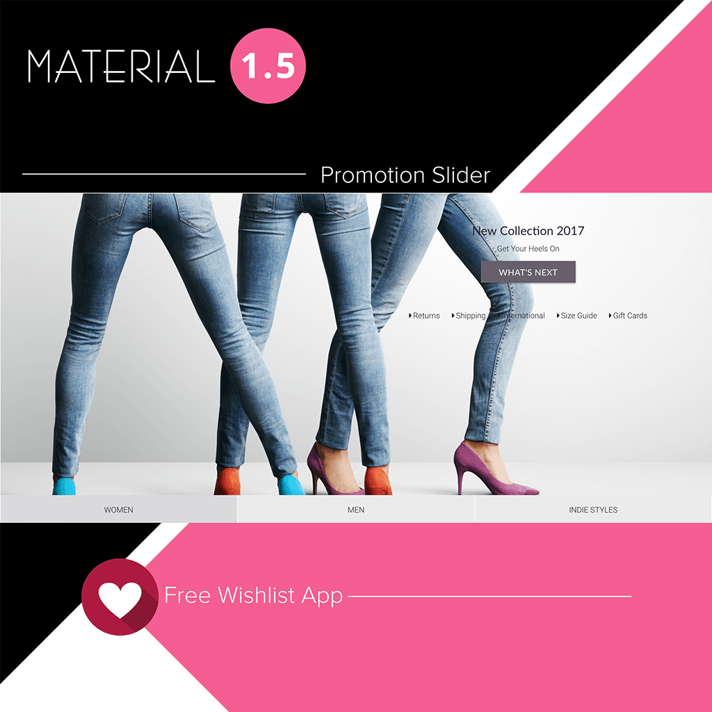 - NEW FEATURE: Added RoarTheme Wishlist App. - NEW FEATURE: Promotion Slider. - NEW FEATURE: Color Swatches for Product Items. - NEW FEATURE: In product page, thumbnail images can be displayed in slider. - Other minor bug fixes and improvements.