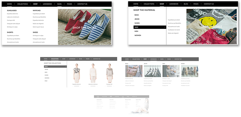 You can put any rich contents on the mega menu: images, video, products… With 5 styles of menu built-in, you can easily choose the one suited your demand.