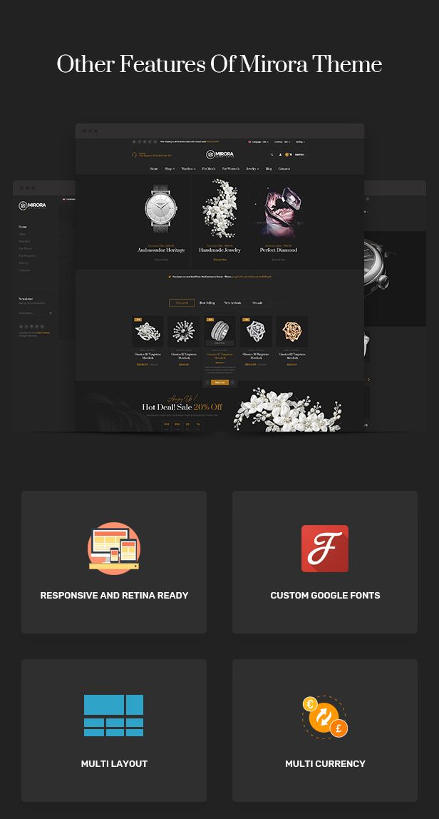 Mirora Luxury Watches & Jewellery Shopify theme will be a great choice for your online store!