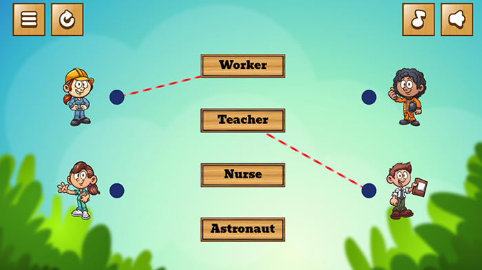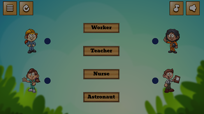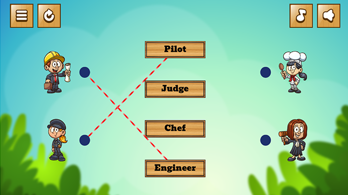 Join the fun with the theme “My Job” for kids! This game will help you practice your thinking ability and English vocabulary by matching words correctly with pictures of job descriptions. Get ready to be the smartest player and find the right words for each job!The rules of the game are very simple. You’ll see a list of job descriptions like “doctor,” “police,” “teacher,” and more. Your task is to match the word with the corresponding job description. You can observe elements in the image such as working tools, costumes, ...To win the game, you need to have the flair and the ability to learn about the job. You can learn through the pictures to identify the unique characteristics of each job and connect them with the corresponding descriptive word.The game “My Job” not only helps children practice vocabulary but also helps develop cognitive ability and logical thinking. You will explore the world of work through descriptive pictures and broaden your understanding of different occupations.Get ready to start this game and match the correct word with the pictures that describe the job. I wish you have moments of fun and learning next to this “Job Names” game.