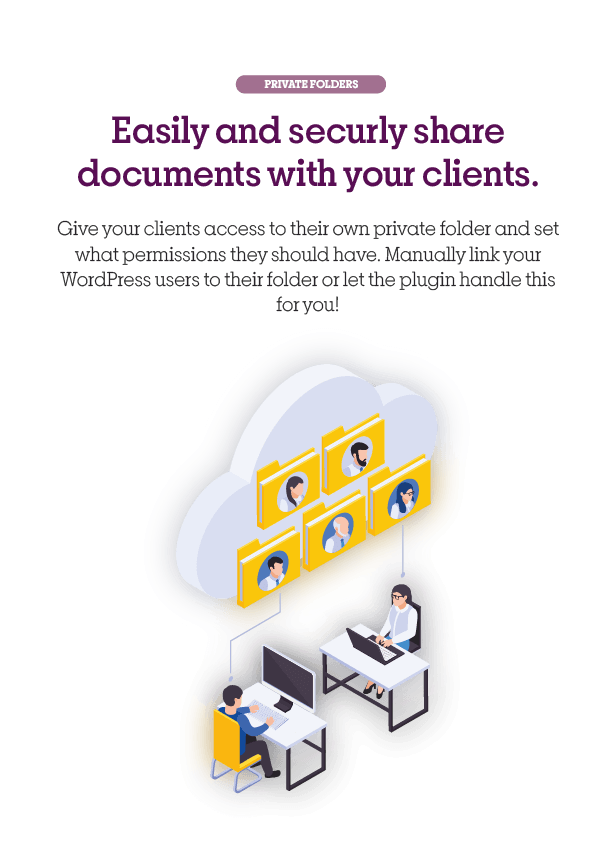 documents to their own private folder. You can link your WordPress Users manually to their own folder or let the