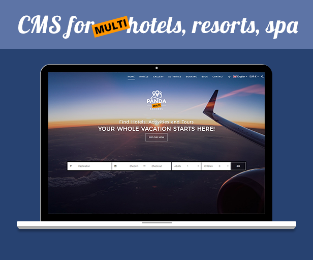 Travel agency, tour operator, hotel chain or just an owner of several hotels, resorts or spa? This CMS is built for you! Add your hotels and rooms. Manage your prices. Create original activities and tours, extra services and follow up your bookings!