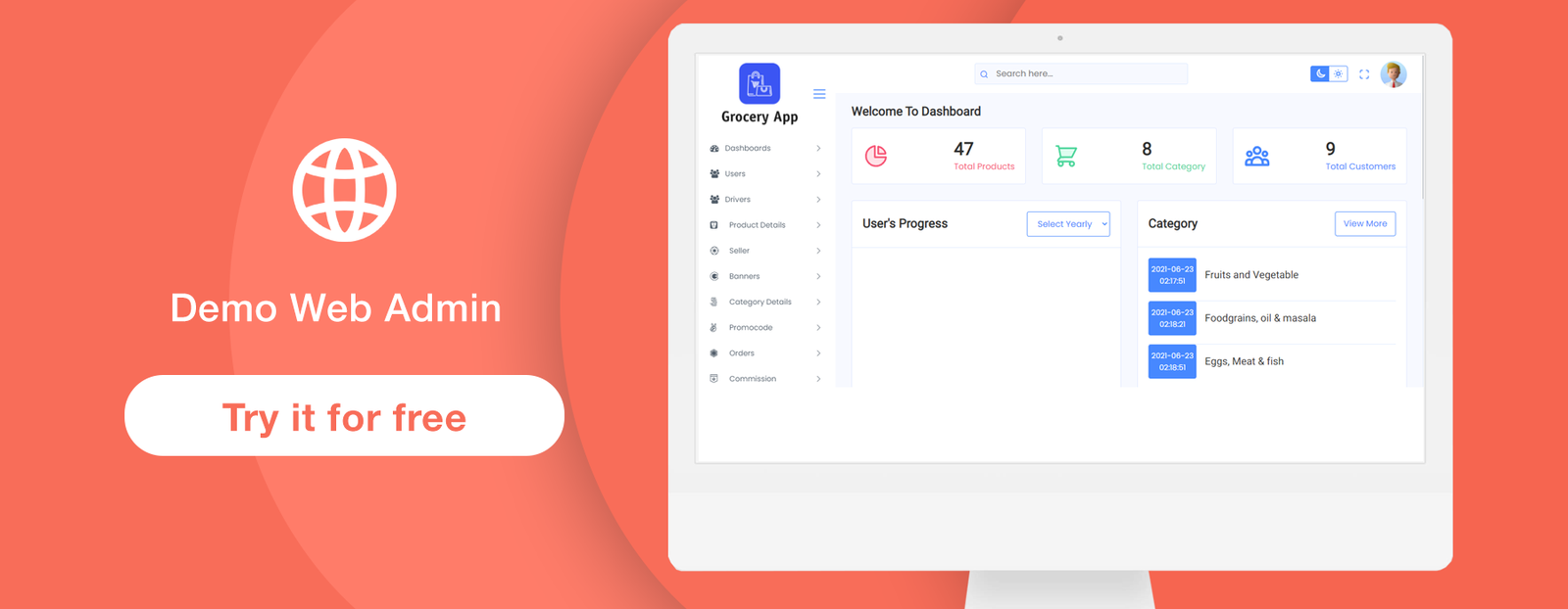 Multiple grocery sellers can register within the app and showcase their grocery products category-wise, assisting them in selling their products online.