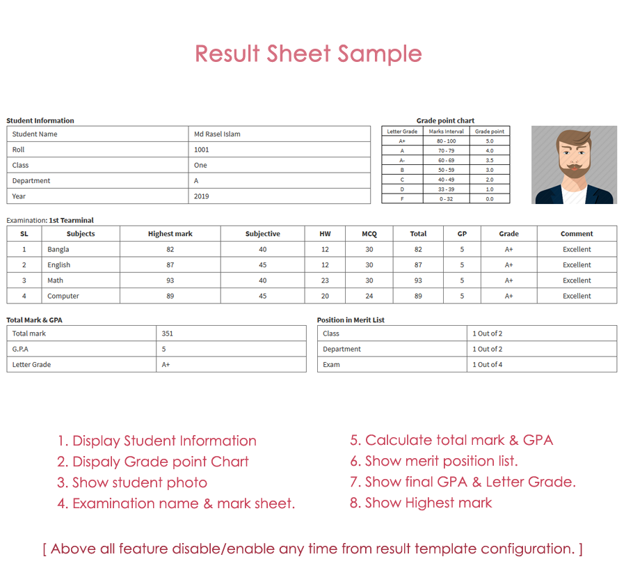 Some of the key features of a School Result Management System include:
