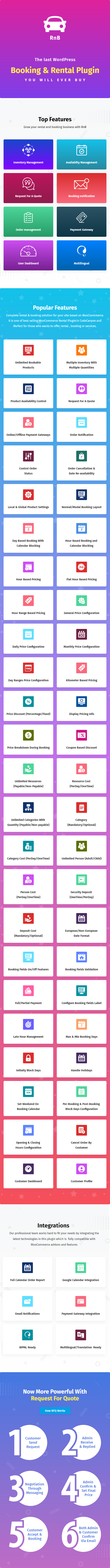 - Discount on general pricing plan depending on rental days - Discount on daily pricing plan depending on rental days - Discount on monthly pricing plan depending on rental days - Discount on day ranges pricing plan depending on rental days - Local and global setting to show on/off pickup date and pickup time - Local and global setting to show on/off return date and return time - Local and global setting to show on/off pricing flip box