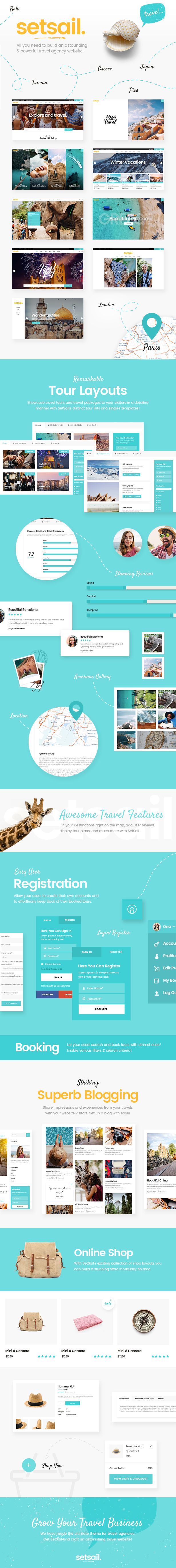 We have made just the perfect theme for travel agency websites with astonishing features that are great for showcasing your tourism and traveler projects! You can present your tours & destinations in great detail and have people book trips online thanks to the powerful online booking system that comes included with the theme. SetSail comes with a collection of stunning predesigned homepages that can be modified to fit your travel business needs.